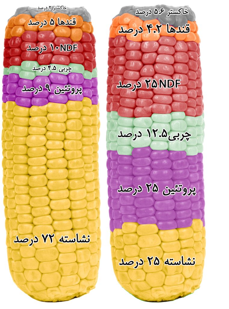 | سیلوی ذرت | ۳۰٪ | ۲۲–۲۵ |